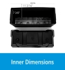 Camco's Double Battery Box safely stores automotive, RV and marine batteries. Made of heavy-duty, corrosion-resistant polypropylene, it holds (2) 6V Group GC2 batteries or (2) 12V Group 24-1/2" (L) x 7 -3/8" (W) x 11- 3/16" (H). Includes (2) straps and (4) strap clamps with screws. The Double Battery Box meets U.S. Coast Guard CFR 183.420 and ABYC E-10.7 specifications when used with (2) 6V Group GC2 batteries.