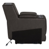 Thomas Payne Seismic Theater Seating takes relaxation to a whole new level. Modernly designed with plush upholstery, this collection lets you lounge in both comfort and style. New modern color and style options are now available. Fits through 26" entry door. Space-saving wall hugger reclining components with power recline, along with power adjustable headrests, Chrome LED cup holders, and power lumbar. Also features internal storage and charging station for 12 Volt and USB in center console. Configure pieces to fit your space.