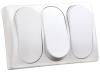 SPST, 13 Amp @ 125 VAC, 10 Amp @ 250 VAC, 1/2 H.P., 125-250 VAC, 5 Amp @ 14 V (T). UL/CSA/VDE approved. White . Outside Dim: Triple: 3.434" x 5.000"