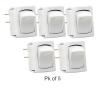 SPST, 16 Amp @ 125 VAC, 16 Amp @ 250 VAC, 3/4 H.P. @ 125-250 VAC, 10 Amp @ 14 VDC. UL/CSA/VDE approved. White. Cutout: 0.756" x 0.508". Switch: 0.745" x 0.500"