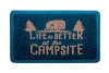 Stylish "Life Is Better at the Campsite" door mats are great for home, outdoors, under a pet bowl or camping! Use them to help trap dirt and debris to prevent bigger messes. Looped PVC material dries quickly, provides a cushioned step and is easy to clean. This mat comes in blue with an orange "Life is Better at the Campsite" logo. It measures 26 1/2-inches x 15-inches.