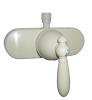 4" single lever shower valve with decorative lever handle & vacuum breaker. Biscuit finish.