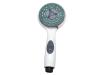 Deluxe 5 function massaging hand held shower head with pressure assist and water saving feature. White.