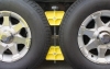 A smaller version of the Wheel Stop, designed to fit 26" to 30" diameter tires with tire spacing of 1-1/2" to 3-1/2". Place Wheel Stop between your tandem tires to prevent both forward and backward movement while parked or re-hitching. The Small Wheel Stop installs easily between tires, stabilizing your trailer with one piece of equipment. Patented.