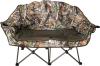 It's a double Lazy Bear Chair! Get ready to get close and personal sharing this 2 seater! Equipped with two stem glass holders on either side. One size fits all, rated at 500 lbs. Double 600 D polyester fabric. Sturdy 3/4" black tube frame. Stabilizer feet. Padded back and arm rests. 2 stem glass and beverage holders. Carry bag included. 38.5" H x 59" W x 24" D. Seat height: 16". Weighs 22 lbs. Carry bag not covered under warranty.
