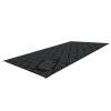 Ultra durable/UV protected recycled Polypropylene breathable outdoor mat. Lightweight with heavy duty 600D nylon carry bag. Mold and mildew resistant, will not kill grass. Waterproof, breathable and reversible. Includes 4 stakes. Nylon carry bag not covered under warranty. Black/Grey. 18'x9'.